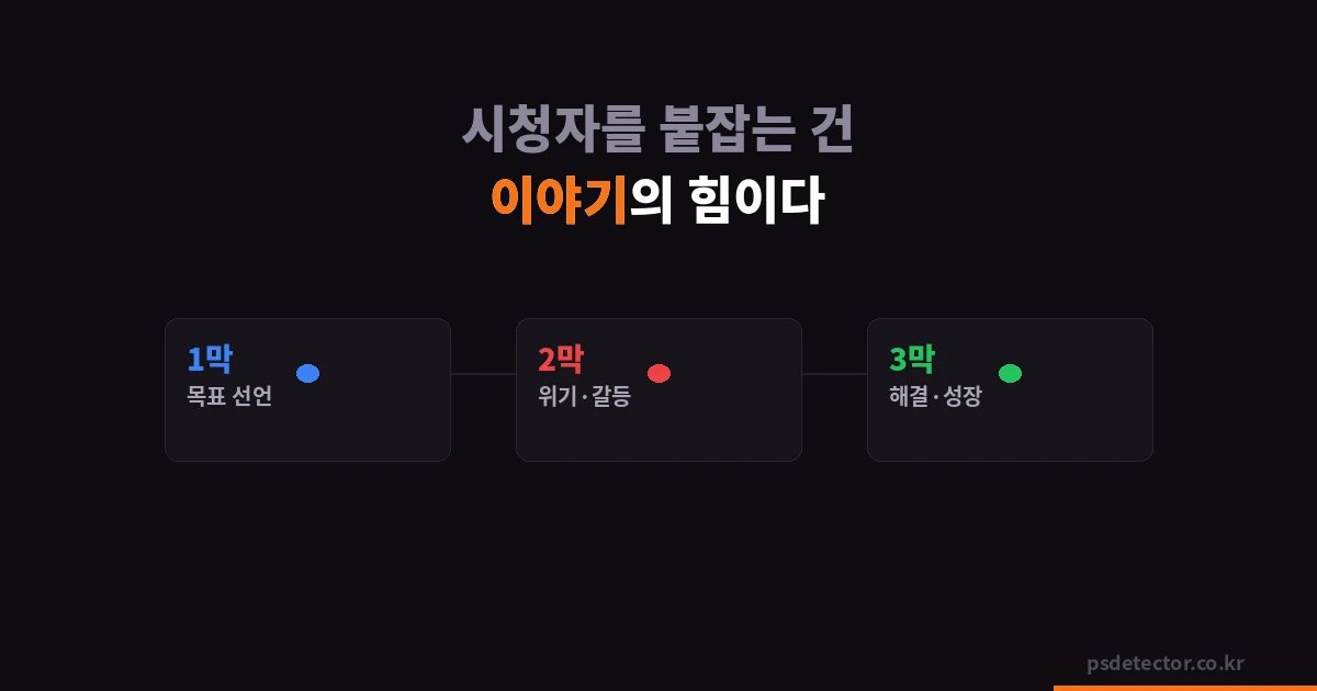 스토리텔링이라고 해서 소설을 쓰라는 이야기가 아닙니다. 방송에서의 스토리텔링은 시청자가 '그래서 어떻게 됐어?'라고 궁금해하게 만드는 것입니다. 궁금함이 있으면 시청자는 떠나지 않습니다.