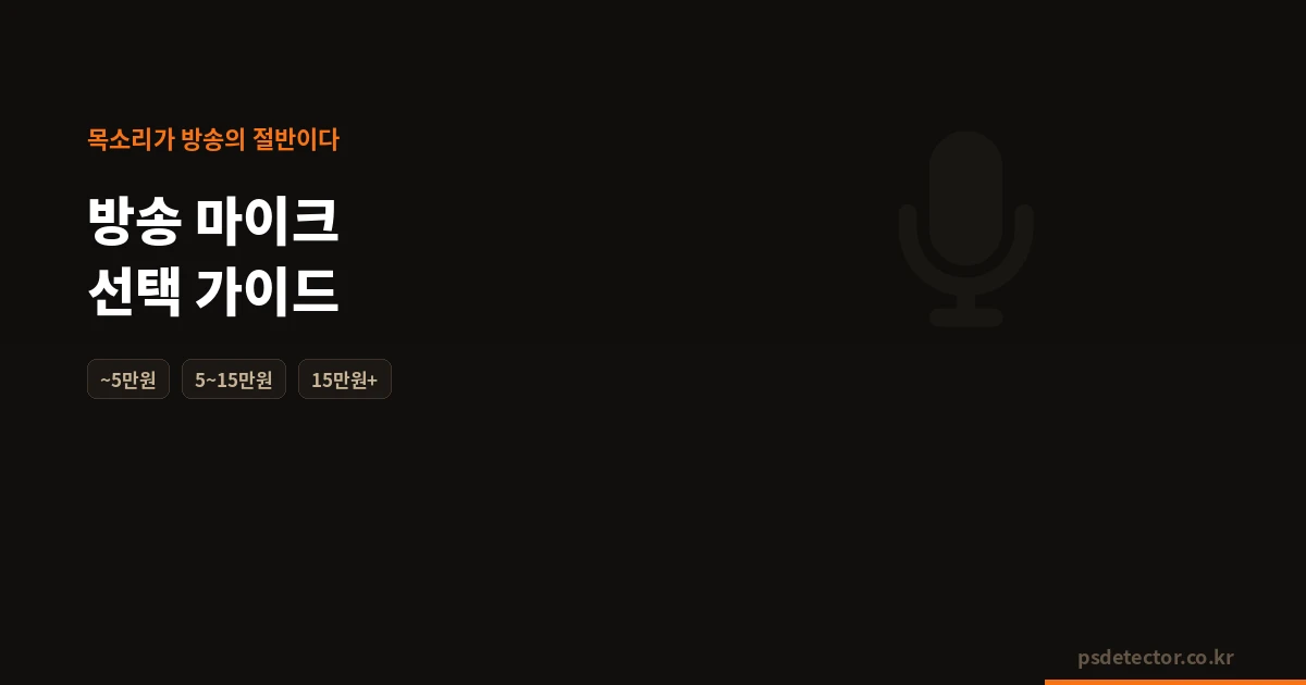 마이크 투자는 방송 품질에 가장 직접적인 영향을 주는 투자입니다. 다른 장비는 나중에 해도 되지만, 마이크만큼은 빨리 투자할수록 좋습니다.