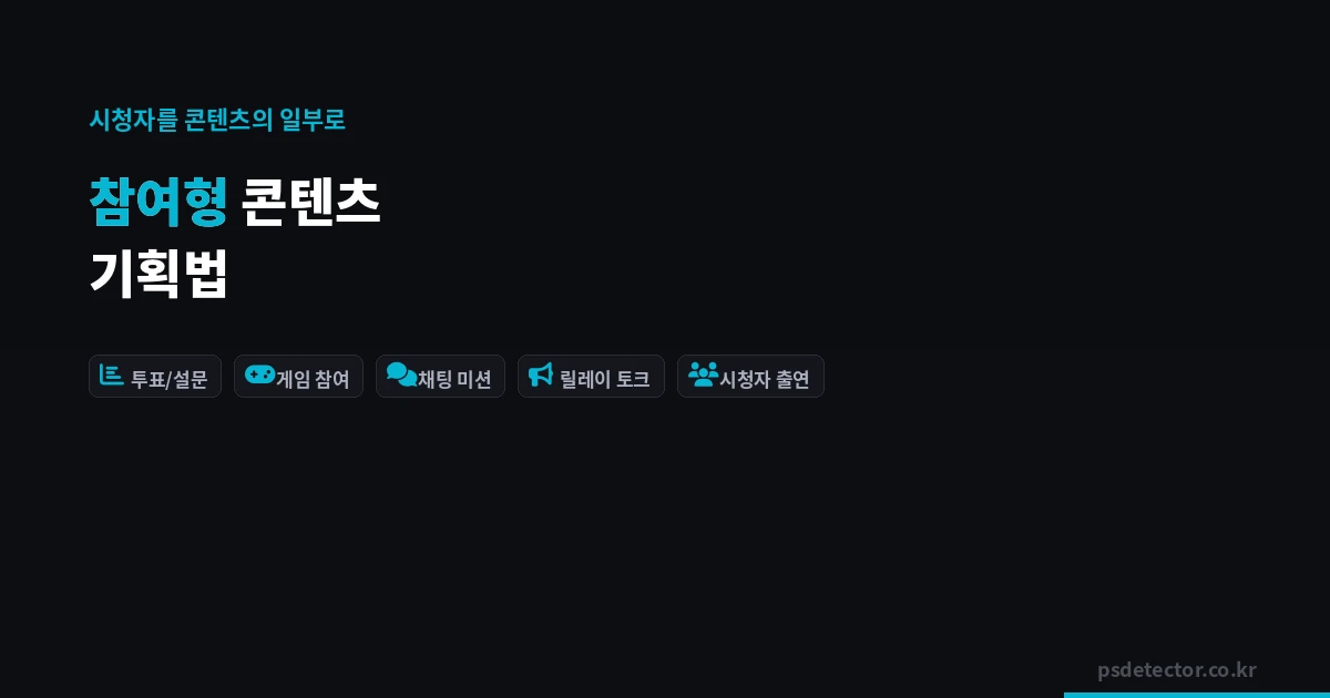 결국 참여형 콘텐츠의 목표는 시청자가 "내가 이 방송의 일부"라고 느끼게 하는 것입니다. 그 느낌이 한 번이라도 생기면 시청자는 쉽게 떠나지 않습니다.