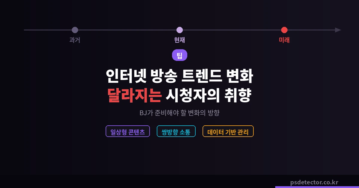 - 예를 들어, 게임 방송이 내 축이라면 게임을 바꿀 필요는 없지만, 시청자 참여 요소를 추가하거나 방송 구성을 체계화하는 것은 트렌드를 반영하는 것입니다