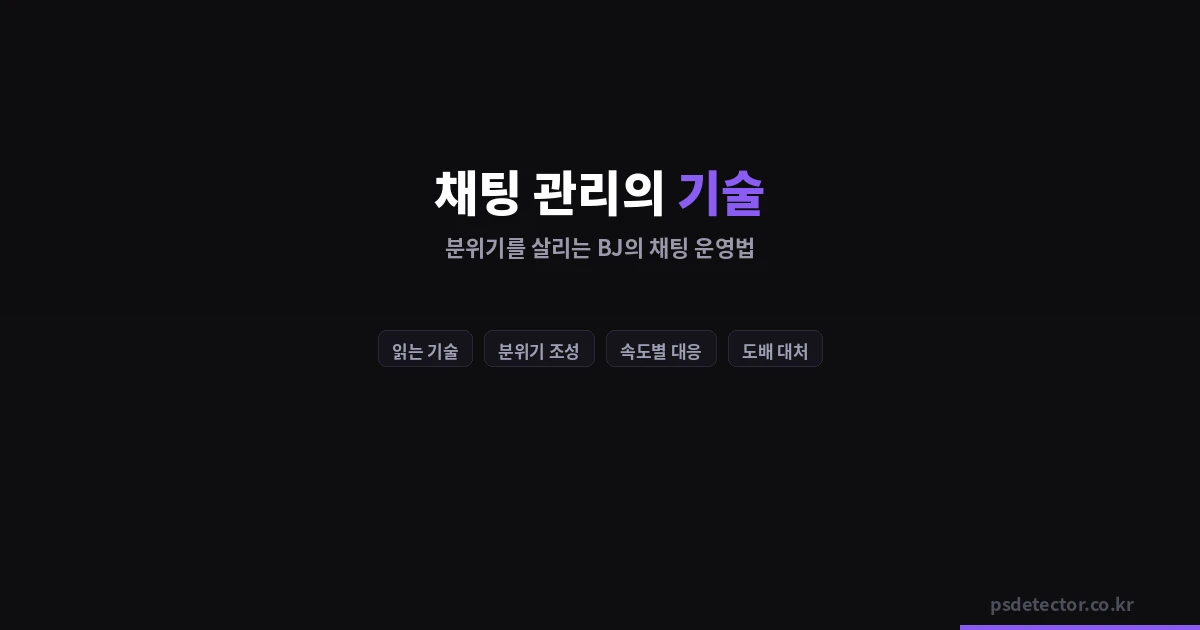 채팅 관리는 BJ가 배워야 할 가장 중요한 스킬 중 하나입니다. 어떻게 채팅을 읽고, 어떤 채팅에 반응하고, 어떤 분위기로 이끌어가느냐에 따라 방송의 질이 완전히 달라집니다.