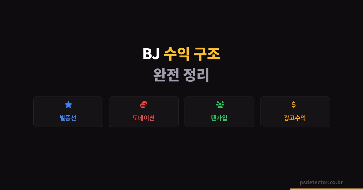이 글에서는 대부분의 BJ에게 가장 중요한 수익원인 후원 시스템을 중심으로 수익 구조를 정리합니다.